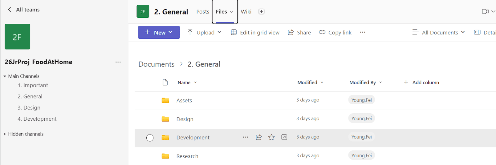 Description: Set up Teams with dedicated channels to Research, Development, Design, and Content, with a space for important announcements and a general feed. Teams has a Wiki system for each channel that includes all of the links compiled into one spot for easy access. We also created a naming system with “FAH-name”. All photos and files have been compressed, renamed, and placed into their respective folders.