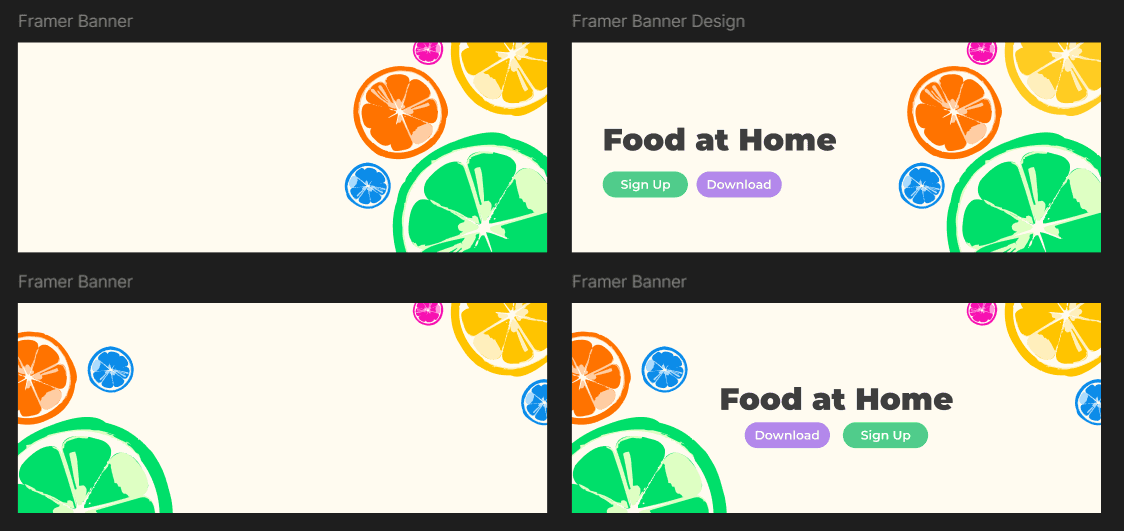 Description: This was the first piece of branding to be published. I used citrus fruits in the banner to speak to our food-based platform, and bright colors from our branding kit to build our brand personality. I designed a right-aligned graphic as well as a centered graphic to allow room for flexibility.