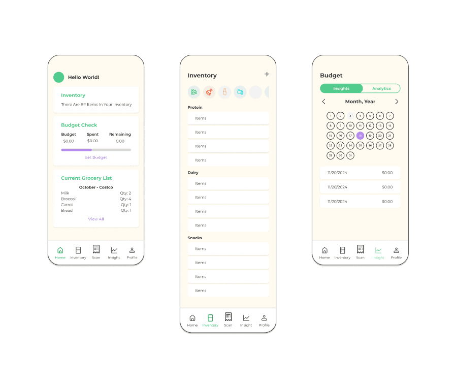 The badge system was created and sorted into primary and secondary badges that align with our mission. The primary badges include the “Welcome”, “Budget & Savings”, and “Long-Term Milestones”. The secondary badges include the “Waste Reduction & Sustainability” and “Grocery Management” badges. These badges are split between being predictable/measurable milestone badges and surprise badges. We discussed how the badge system would motivate users to use the app, and concluded that it would be a self-motivated system for now. Anything more would be considered scope creep.