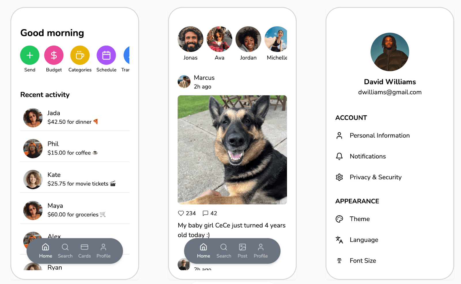 Description: Created a set of three prototype screens implementing three different color palettes.