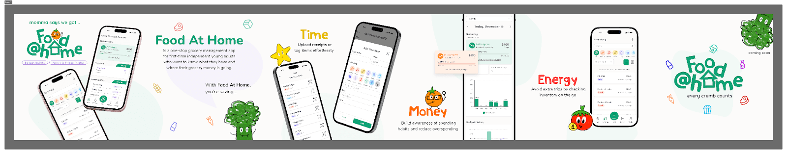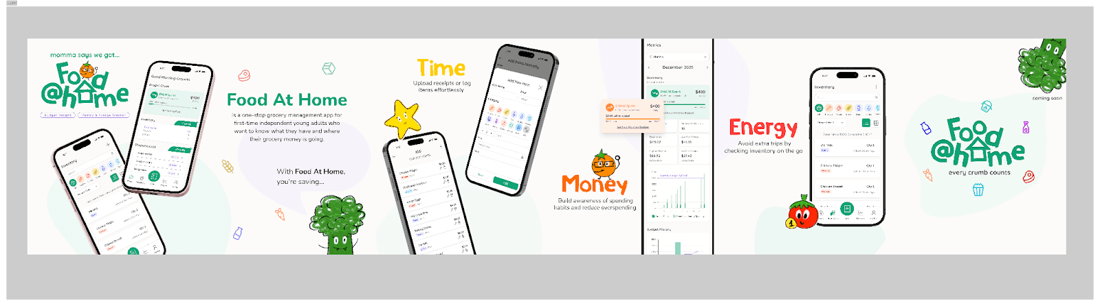 Description: To fully encapsulate and showcase all Food At Home has to offer, we are working on creating a video with a user’s journey accompanied by a walkthrough of our app’s core features.